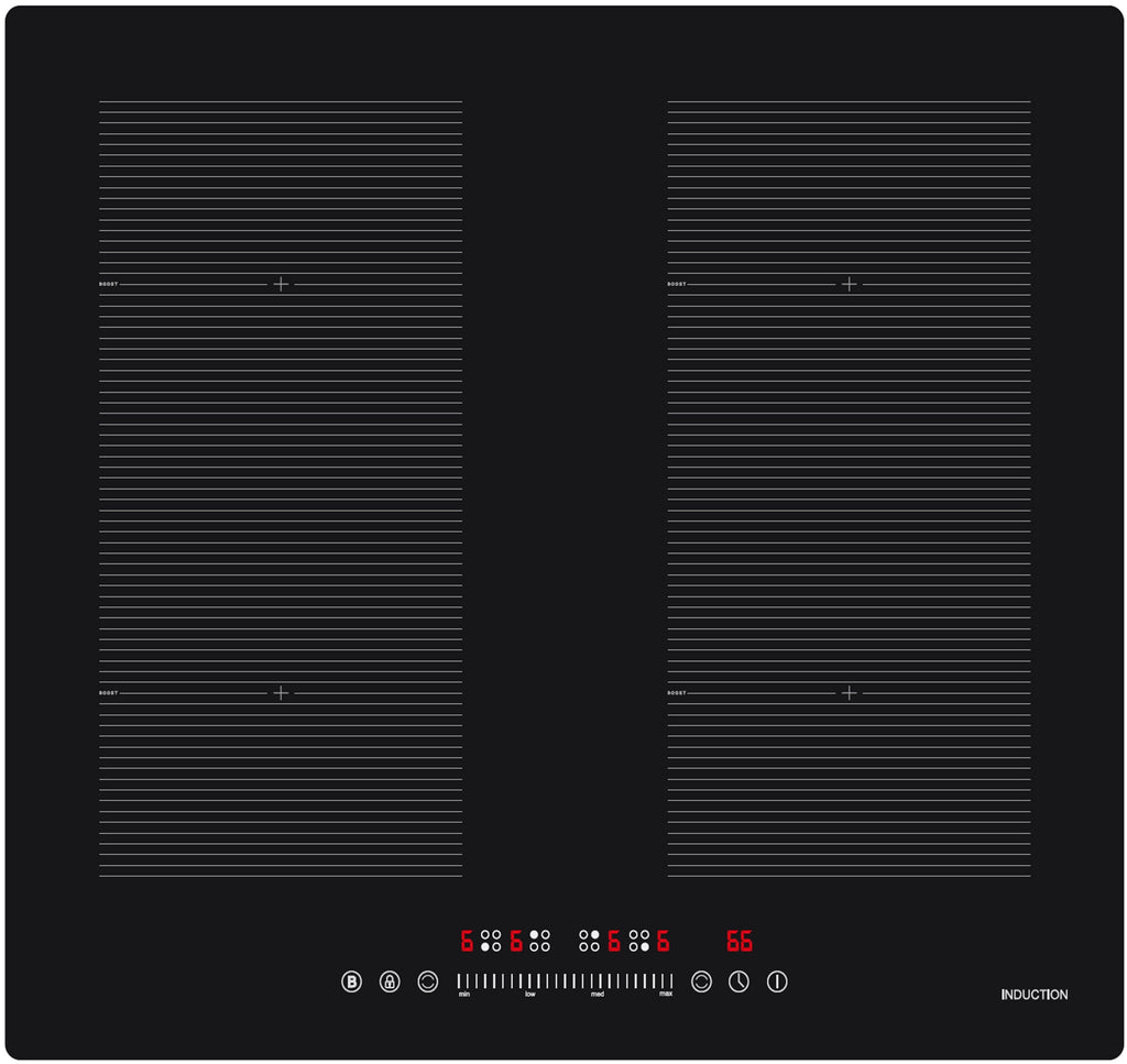 Experience efficient cooking with the Casa 60cm 4-Zone Black Induction Cooktop, designed for modern kitchens. Boasting a total power of 7200W and equipped with four round burners.