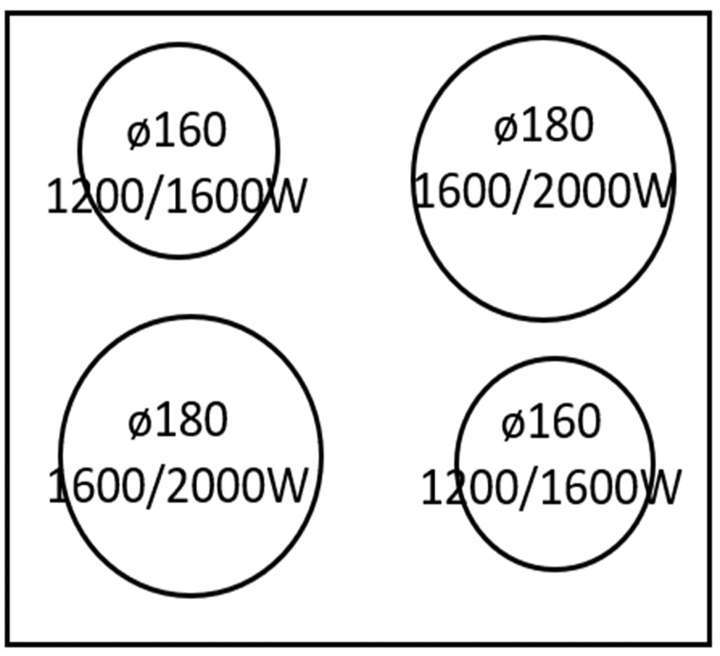 - Rear left zone power and size: 1200W boost 1600W (φ160mm)