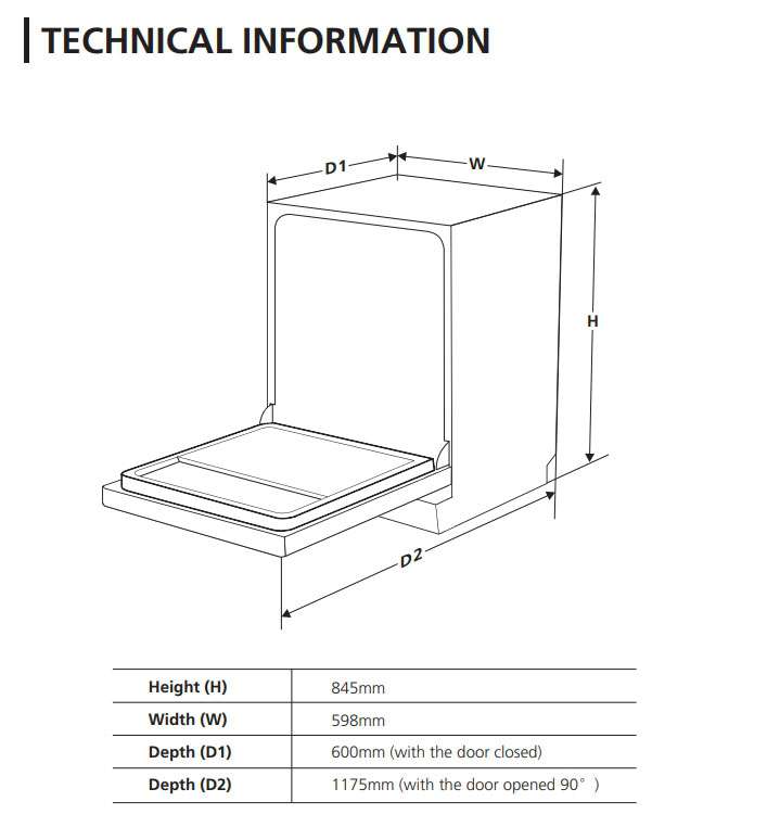 - Product Size H x W x D (mm): 845 x 598 x 600